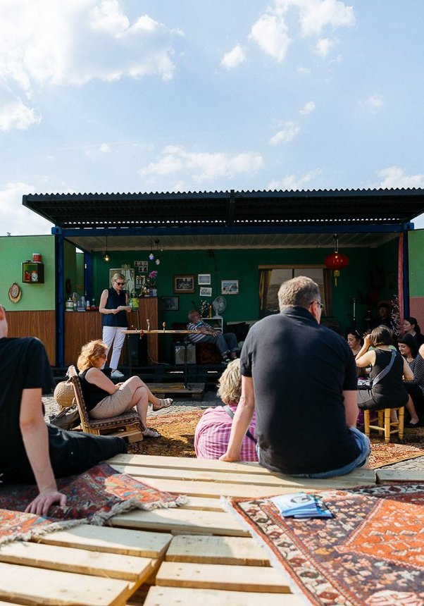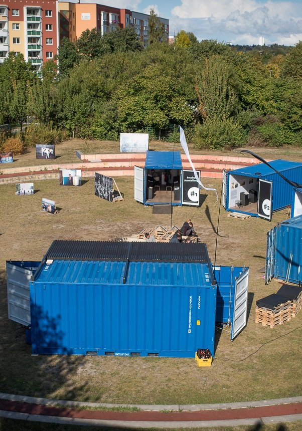 Fotobücher erzählen Geschichten – emotional und unmittelbar. Mittelpunkt jedes „Welt im Umbruch“-Projekts war eine Fotobuch-Ausstellung von international renommierten Fotografinnen und Fotografen, die an öffentlichen Plätzen in Schiffscontainern frei zugänglich war. Sie thematisierte die großen gesellschaftlichen Umbrüche unserer Zeit: Digitalisierung, Klimawandel, Migration, politische und wirtschaftliche Umwälzungen – ebenso wie individuelle Umbrüche.
