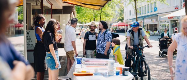 Die Montag Stiftung Kunst und Gesellschaft hat im Sommer 2024 dazu eingeladen, Ideen für Veränderungen und inspirierende Aktionen in Leverkusen Realität werden zu lassen. Eine künstlerische Zeitung, die parallel vor Ort entstanden ist, berichtet darüber. Welche Geschichten geteilt werden, das konnten alle Interessierten aus Leverkusen und Umgebung mitgestalten – alle waren eingeladen, persönlich vorbeizukommen, um Aktionen zu entwickeln und an der Kunstzeitung mitzuarbeiten!