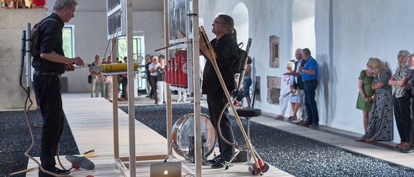 Für zwei der vielen geplanten Projekte riefen die Künstlerinnen und Künstler auf, eigenes Material in die Hauptstraße 12 mitzubringen. Bei „Ein Teppich für Rheydt“ entstand aus allen möglichen Stoffen und Materialien ein gemeinsamer Teppich für die ehemalige Textilstadt. Und alles, was Klang und Musik macht, wurde Teil der „Klangbilder Rheydt“.