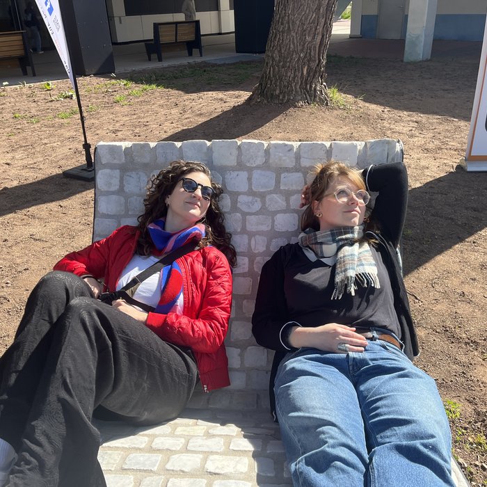 Die Idee entstand 2022 durch den Impuls des damaligen Kulturamtsleiters, der auf eine Innenraumgestaltung von Le Corbusier in der französischen Partnerstadt Poissy verwies. Sie nahm im folgenden Jahr durch zwei städtische Partner Gestalt an: die Kreativwerkstatt der Berufsbildenden Schule Pirmasens und das städtische Friedhofs- und Grünflächenamt. Erstere produziert schon erfolgreich Sitzmöbel aus Metall und Holz im Rahmen der schulischen und kreativen (Aus-)bildung für junge Menschen in Pirmasens, das Friedhofsamt wiederum bildet Steinmetze aus und gestaltet innovativ seit über 20 Jahren den öffentlichen Raum, nicht zuletzt mit der langjährigen Realisierung des Konzeptes der „essbaren Stadt“. Das Interesse der beiden Leiter an unseren Projekten war für uns Anlass, ein Modell einer Liege aus den weißen, aus der Fußgängerzone extrahierten Marmorsteinen zu entwickeln und auf der „Kreativitti-Messe“ dem Publikum vorzustellen.