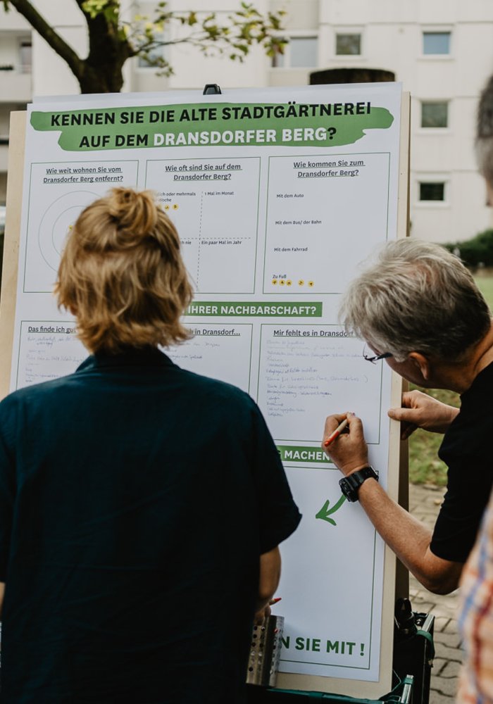 Entlang der Entwicklung des Projekts Zukunftsort Dransdorfer Berg in Bonn erprobt und dokumentiert die Montag Stiftung Urbane Räume in 2025/2026 zudem, wie die im Baugesetzbuch verankerte Beteiligung der Bürger*innen an Bauleitplanverfahren mehr Menschen nachhaltig erreichen kann, also inklusiver und damit demokratischer werden kann. Daran anknüpfend arbeitet die Stiftung in den kommenden Jahren mit Partner*innen aus Zivilgesellschaft, Wissenschaft und öffentlicher Hand verstärkt daran, bestehende – formale wie informelle – Beteiligungsmethoden und -formate qualitativ zu verbessern beziehungsweise bei Bedarf neue Instrumente für eine demokratische Stadtentwicklung zu entwickeln.
